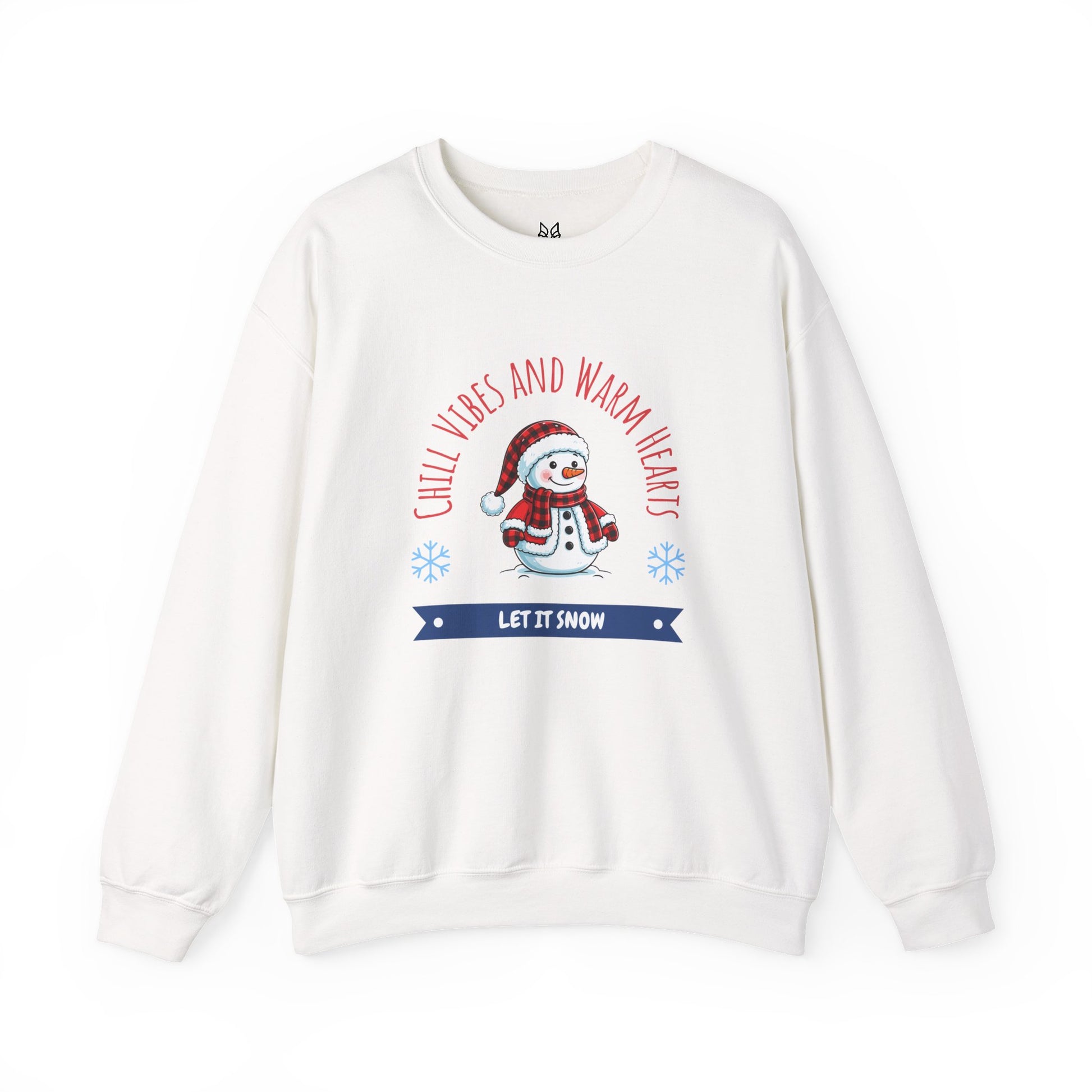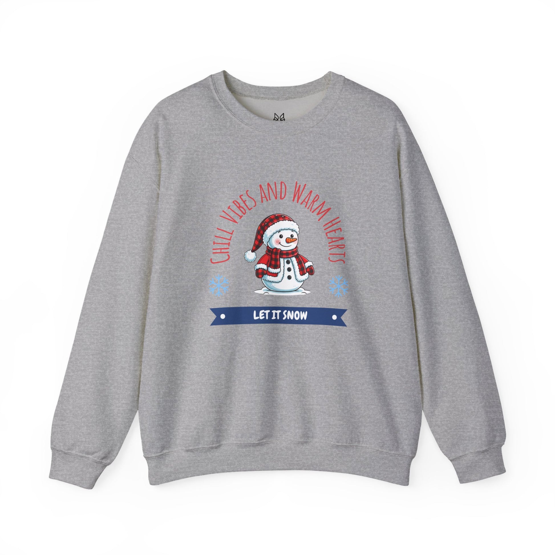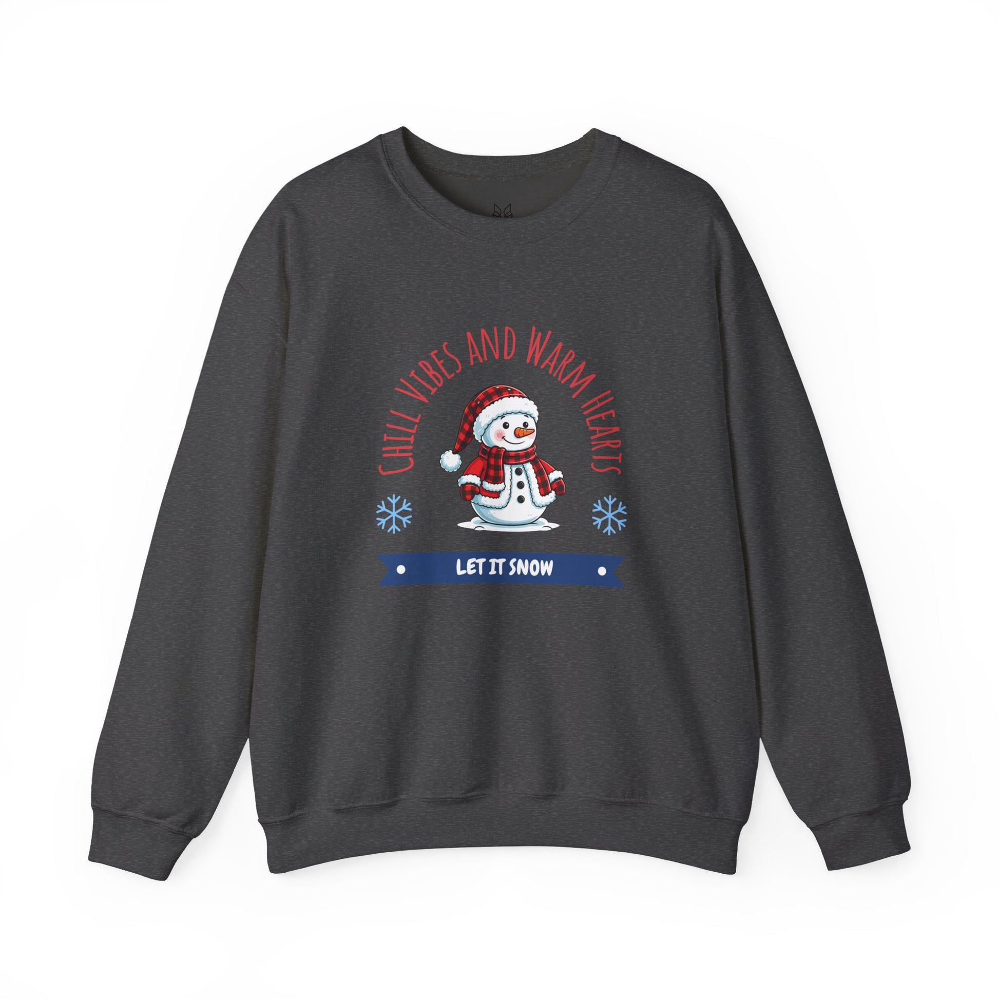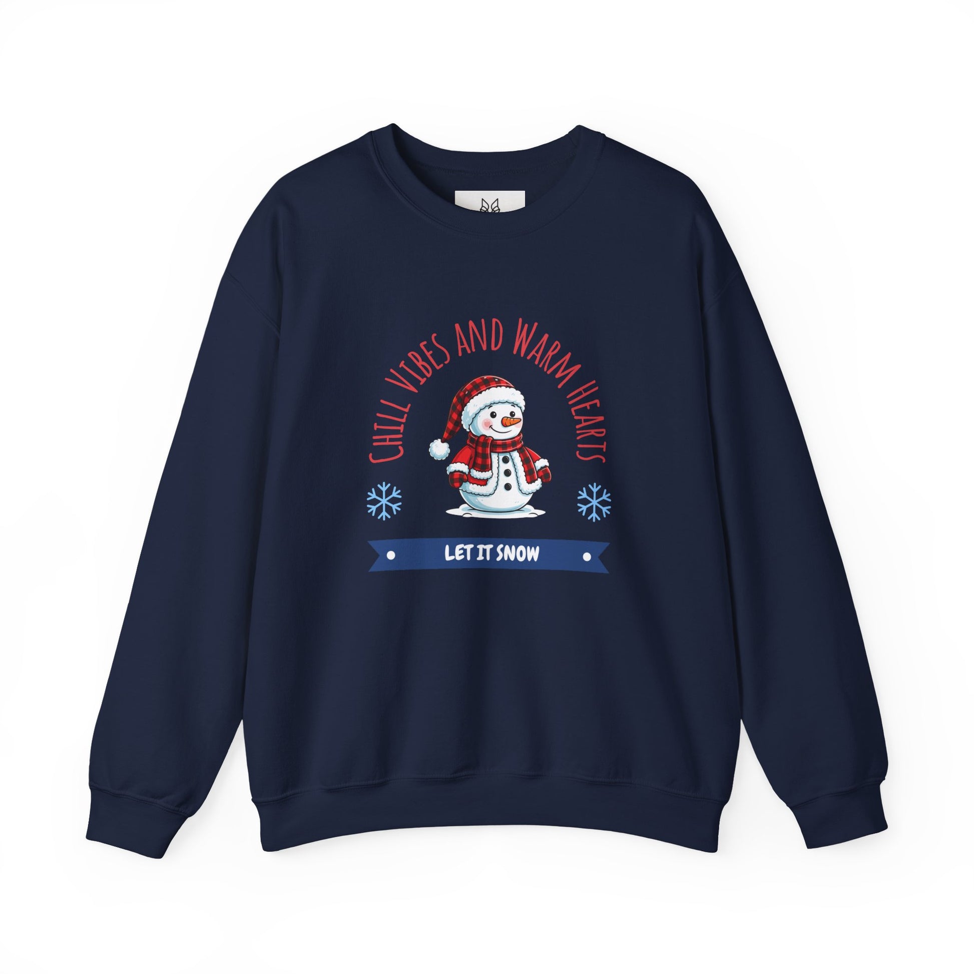 Crewneck Sweatshirt — “Chill Vibes and Warm Hearts” Snowman Holiday Pullover